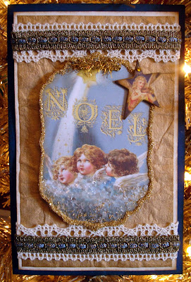 "Since this challenge week takes us right up to Christmas Day, I wanted to use colors that could be used for Christmas, but that we hadn't used in a while...I decided on blue, gold and cream...more of a heavenly/angelic Christmas color scheme! Since it brought angels to mind for me, that's just what I used for my card! Hope you enjoy using these beautiful colors in your creations this week...